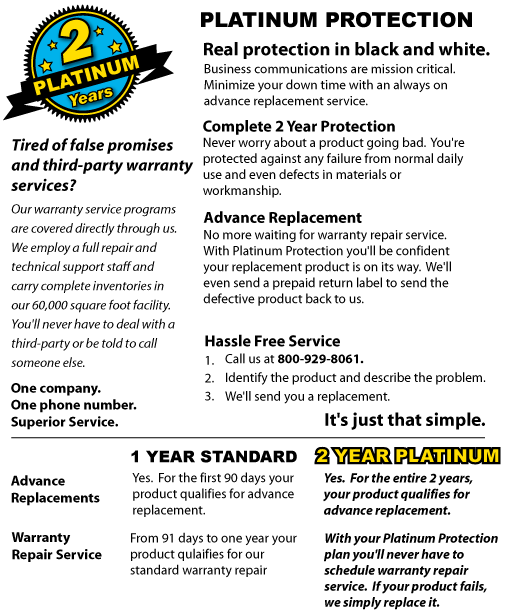 - All New Aastra, Avaya, Cisco, Grandstream, Nortel, Mitel, Toshiba, NEC, Panasonic, Polycom, ShoreTel, VTech, and Yealink products are backed by MetrolineDirect's Rock Solid One-Year Warranty and 90 Day Advance Replacement Service (excluding batteries, and software consultation fees)